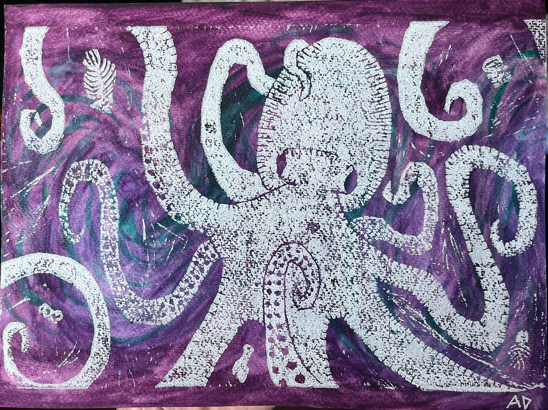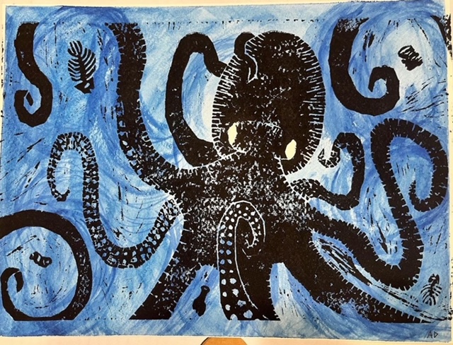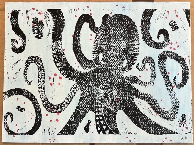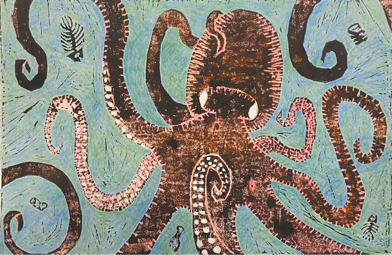 arranged from newest to oldest, most done using linocut and ink prints over watercolor