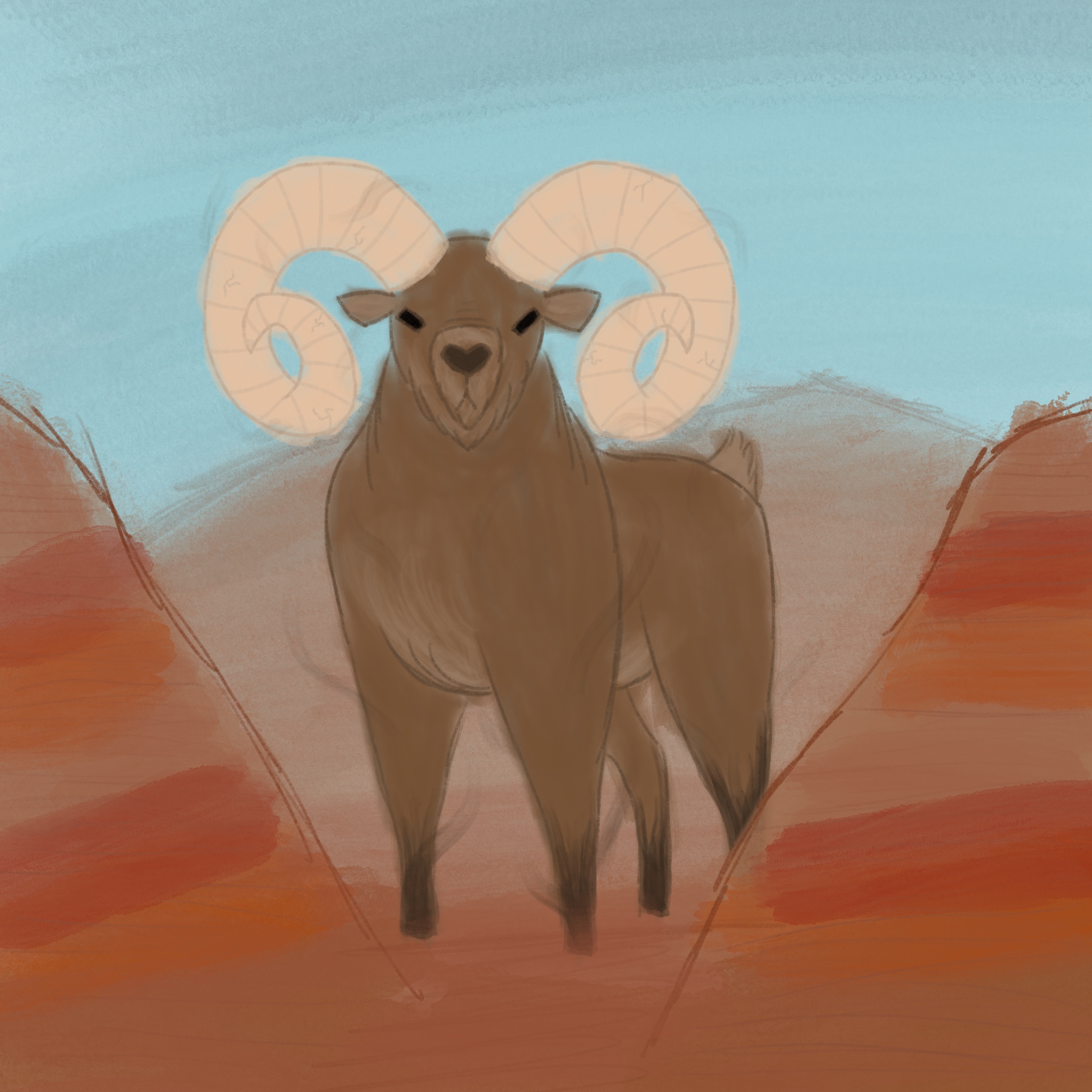 Seismovis shakes the earth with its footsteps; it shatters the ground with its bellows. This titan marches through the mountains and plains, causing earthquakes in its midst. Sometimes, Seismovis will ram its giant horns into dormant volcanoes, and cause them to erupt. While it has no wrath, its sheer magnitude is frightful for any who come across it, and most who see it turn the other way once they feel the ground shake beneath them.
